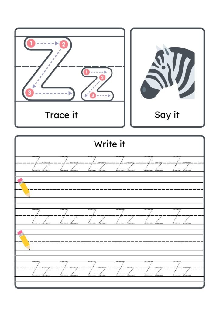 An alphabet tracing worksheet is a learning sheet where children trace dotted letters from A to Z using a pencil, crayon, or marker. These worksheets are designed for: