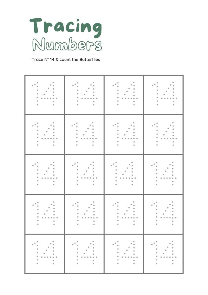 Numbers from 1 to 20 tracing practice