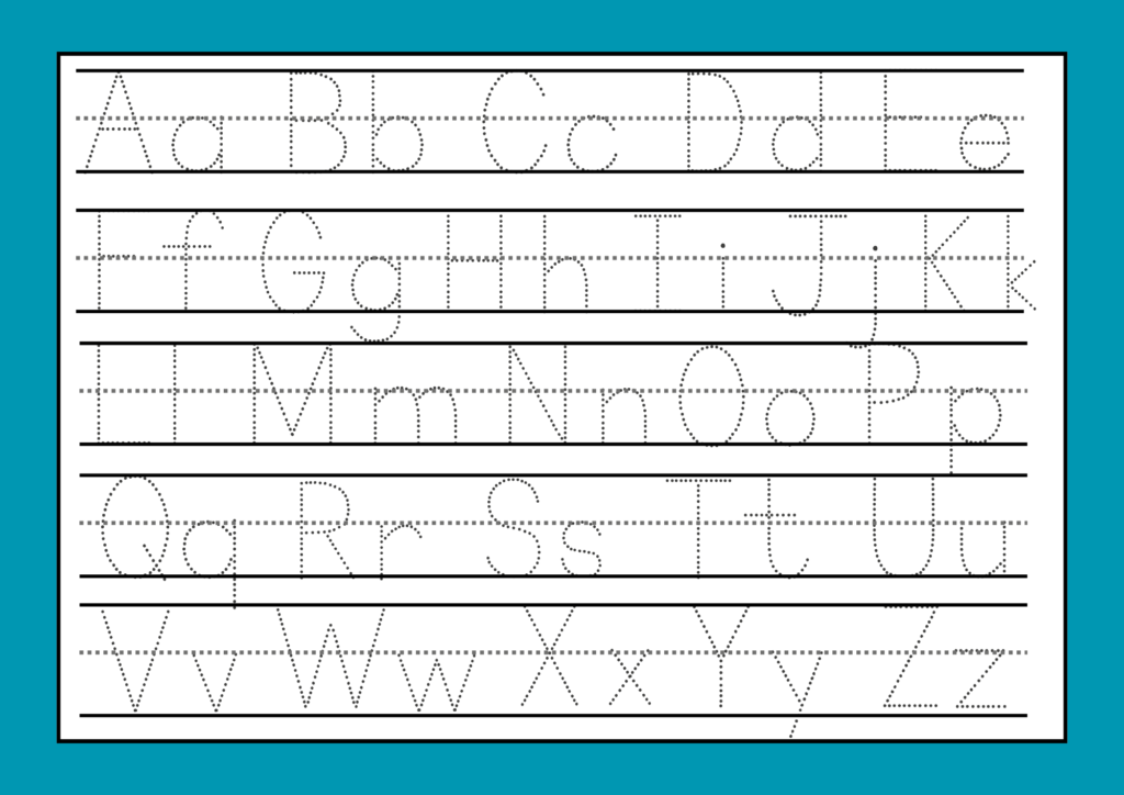 - Lowercase (a–z) letter tracing
